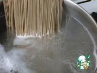 В подсоленной кипящей воде отвариваем лапшу 7 мин, до готовности аль-денте. |