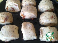 Сверните тесто в рулет, разрежьте на куски шириной 3 сантиметра. |