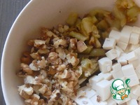 Остывшие баклажаны нарезать, нарезать кубиками тофу, грецкие орехи порубить. Духовку поставить на разогрев на 250 градусов. |