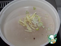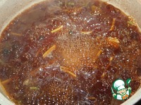 На сковороду добавить соевый соус, соль по вкусу (если соевый соус сильно соленый, то соль не добавлять), 3 половника бульона, несколько горошин душистого перца. Довести до кипения |