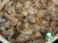 Высыпать в сковороду желудки. Тушить на среднем огне под крышкой до почти полного выпаривания жидкости. |