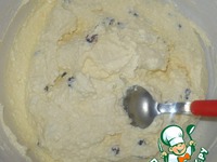 Начинка творожная. Творог, сахар, яйцо, изюм, ванильный сахар и ванильный пудинг, хорошо перемешиваем. |
