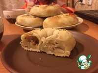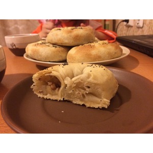А так как тесто само по себе пресное, то начинка строго говоря, может быть любой - как сладкой, так и соленой... Кроме начинки этого рецепта, я делала еще с грибами и картошкой.