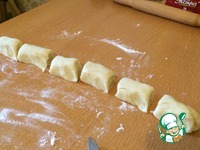 Достаем тесто из холодильника (ему не обязательно полностью остыть ) и делим его на равные (в данном случае 6 ) части размером с детский кулачок. |