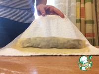 У скрученного рулетика залепляем краяи заворачиваем его в улитку |