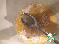 Взбитые яйца + мука + лимонный сок + цедра смешивается. |