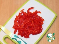 Запеките перцы в духовке или микроволновке. Очистите от кожицы и семян, мякоть нарежьте соломкой. |