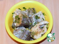 Рыбу очистите и нарежьте кусками (тол. ~3 см), залейте маринадом и оставьте хотя бы на 1 час (в холодильник). |