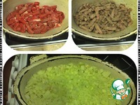 Подготовим продукты. Говядину порезать соломкой. Лук порезать помельче. |