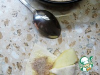 Яблоки почистить и порезать дольками по количеству кусочков теста. И аккуратно завернуть каждую дольку в тестяной треугольник. |