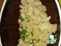 Режу все кубиками, фарш просто выложила. |
