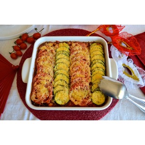 Описание: Очень полезное и низкокалорийное блюдо, полное витаминов, вкусов и ароматов, зарядит вас энергией и придаст силы. Это современная версия классического французского блюда, получившего свое название благодаря неглубокой огнеупорной форме, в которой оно запекалось, - тиан. Его можно собрать за несколько часов до приготовления.