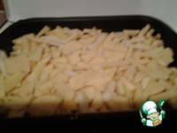 На луково-морковный слой выложить картофель, порезанный соломкой. Посолить, поперчить. Налить еще немного холодной воды. |