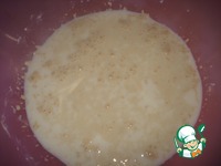 В теплое молоко положить сахар, 1 ст. л. муки и дрожжи, дать постоять минут 5, чтобы дрожжи взбодрились. |