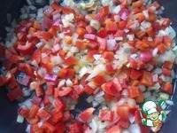 Перец разрезаем пополам, удаляем семена и плодоножку, нарезаем небольшими кубиками. |