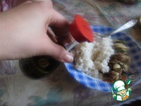 3. Смешиваем рис, грибы, добавить соевый соус Kikkoman 1 ст. л., соль, перец по вкусу. |