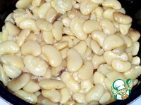 Фасоль белую крупную так же замачивала на 12 часов. После чего варила её минут 30 и переложила вместе с жидкостью в чашу мультиварки. |