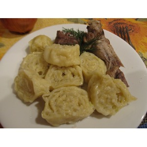 Готовую утку переложить в большую кастрюлю (при варке штрудель заметно увеличится в размере), долить воды, посолить и довести до кипения. |