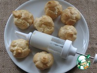 При помощи кулинарного шприца /с узкой насадкой/ заполнить профитроли кремом. |