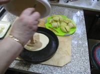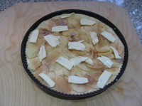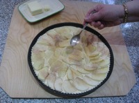 Нарезаем яблоки тонкими ломтиками и веером укладываем на тесто. |
