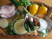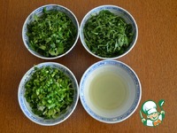 6. Пока готовится курица, мелко порезать зеленый лук, рукколу и кинзу. Выжать сок из лайма. |