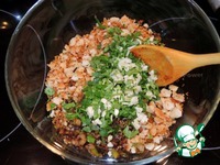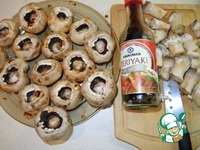 Шампиньоны хорошо промыть, ножки отделить от шляпок. Шляпки сбрызнуть соевым соусом-маринадом KIKKOMAN и отставить. Ножки мелко порубить. |