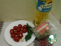 Готовим соус. Для этого берем помидорки, зубчик чеснока, 1 ст. л подсолнечного масла, укропчик и измельчаем. Привариваем 3 минутки. |