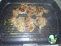 Берем сковороду гриль, разогреваем ее и укладываем наши кусочки маса |