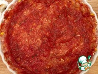 Сверху кладем мелко порванную на кусочки моцареллу. Ставим в духовку, разогретую до 180 градусов на 45 минут. Через 30 минут достаем, и, если много влаги в форме, то сливаем ее. |