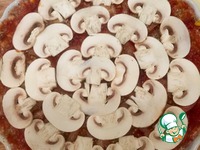 Сверху выкладываем оставшиеся грибы, порезанные на тонкие пласты. |