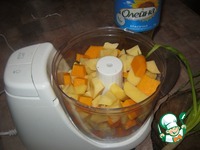 Картофель и тыкву режем на кусочки и измельчаем в чаше комбайна |