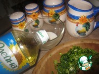 А пока готовим соус - смешиваем сметану, натёртый чеснок с маслом ТМ "Олейна" ( 3 ст. л.), режем зелень (зелёный лук) |