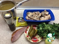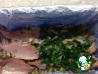 Налить несколько ст. л. бульона на дно формы. Выложить слой петрушки. |
