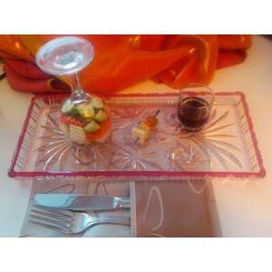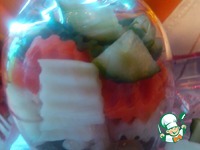 Овощи нарезать красиво и сложить в салатник (или в моем случае в винный бокал и перевернуть его на блюдо на котором собираетесь подавать) |