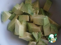 Авокадо очистить, удалить косточку и нарезать кубиками. |