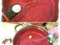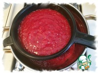 Малиновую смесь поместить в блендер и превратить в пюре. Процедить смесь через сито что бы избавиться от семечек. |