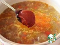 Затем добавляю томатную пасту. Солю по вкусу. Довожу до готовности. |