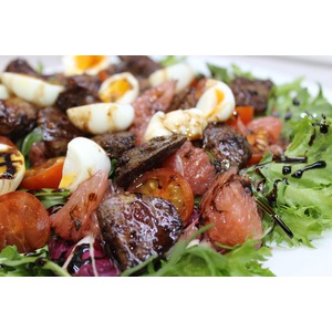 Описание: Легкий, необычный, простой в исполнении! Этот салат покорит сердце любого гурмана! Крем-соус бальзамик превращает салат в необыкновенное блюдо! Даже добавить нечего - просто присоединяйтесь к трапезе!)))