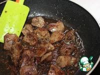 Печень промыть, обсушить, нарезать кусочками среднего размера |