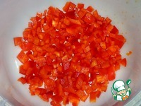 Болгарский перец любит вся моя семья. Я добавляю его в салаты, горячие блюда для вкуса и аромата. Перец нарезала кубиками и пересыпала в глубокую миску. |