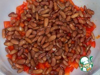 Фасоль замачивала на 15 часов. При замачивании она хорошо набухла. Варила её 35 минут. Промыла фасоль под проточной водой и высыпала в миску с перцем. |