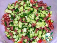 Салат по вкусу заправляли соусом Киккоман. Вкусный, сочный, витаминный салат! |