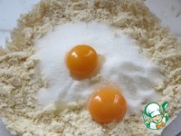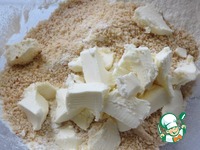 Просеять муку, добавить масло и миндальную муку. перетереть всё руками. |