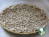 Покрыть пергаментом и положить сверху сухую фасоль. выпекать в духовке при 180" - 15 минут. |