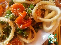Описание: Рыбу и морепродукты можно в Пост. Попробуйте разнообразить постный стол вот таким тёплым салатом из кальмаров