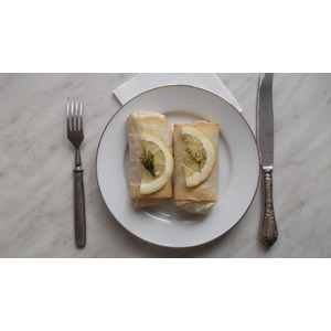 Описание: Хрустящие пирожки из теста фило с начинкой из риса и красной рыбы. Готовятся легко и просто, приятную кислинку начинке придает сметана.
