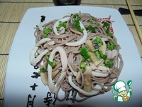 Описание: Я давно собиралась попробовать гречневую лапшу, но вот настал Великий пост и пришлось придумывать соответствующий рецепт. Хотелось чего-то простого, без всяких премудростей и специй, хотелось попробовать новый вкус в натуральном виде. Если не считать чистку кальмаров, то всё готовится очень быстро и просто. А получается безумно вкусно. Если вы ещё не пробовали гречневую лапшу, то обязательно купите её, мне показалось, что готовить её легче, чем обычные спагетти.