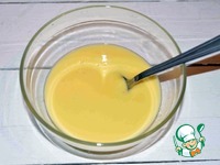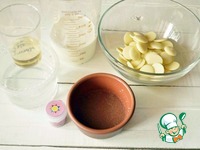 Утром готовим зеркальную глазурь. Соберем нужные нам ингредиенты. Желатин заливаем небольшим количеством воды для набухания. |