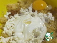 Добавляем творог (я не перетирала, мне нравится зернистая структура), сметану, яйцо и масло Олейна. Перемешиваем |