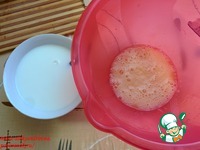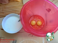 Размеры моего противня: 30 см на 22 см, высота 6 см. Как видно на фото смесь заняла половину высоты, в процессе выпекания пирог не поднимается.